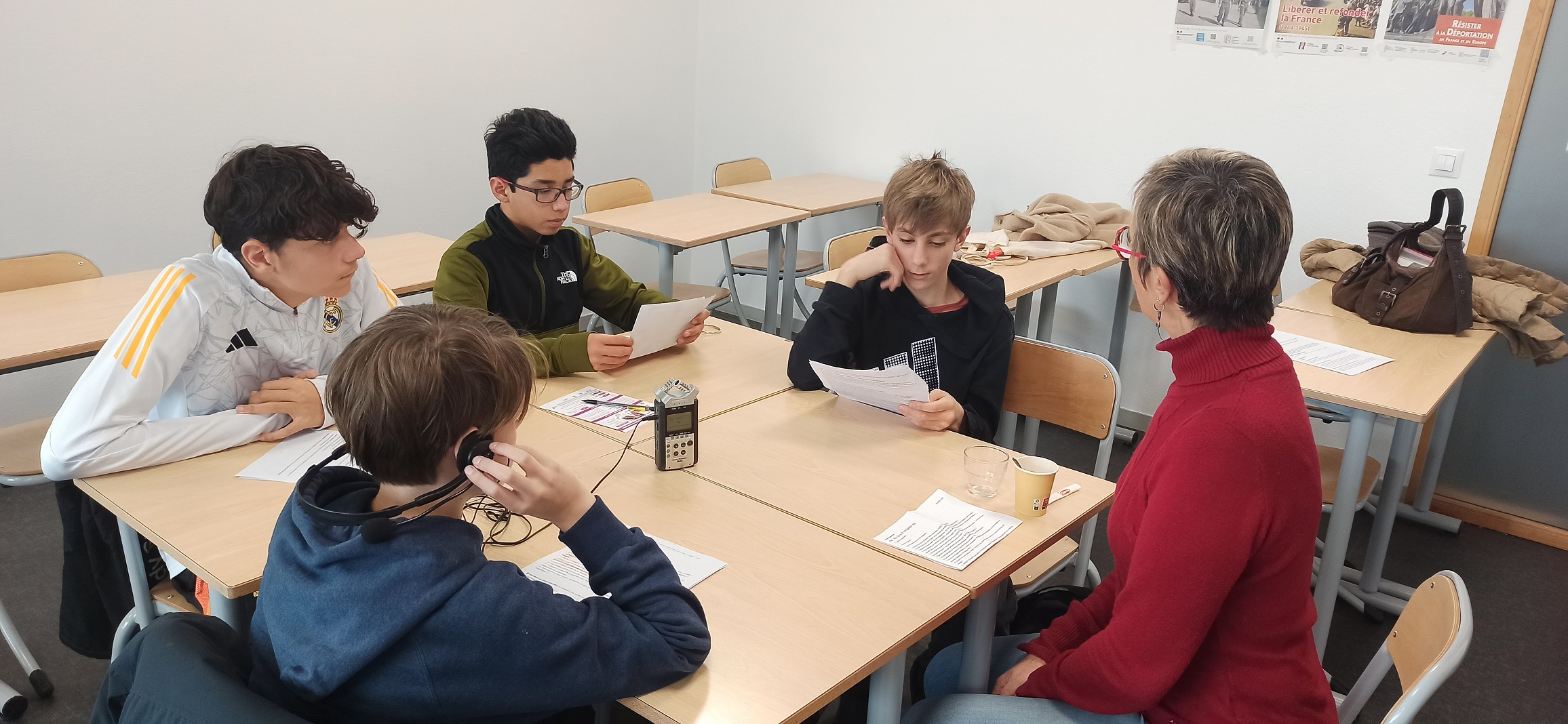 L'objectif final étant la réalisation de podcasts pour une participation au concours Jeunes Reporters pour l'Environnement porté par l'association Teragir https://jeunesreporters.org/, la classe a bénéficié d'un atelier avec la journaliste Leïla Beratto sur les techniques de l'interview.